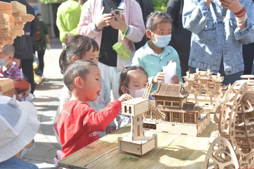 好奇、想象和創(chuàng)造是孩子的天性,盡管露天活動(dòng)天氣較熱,卻依然阻擋不了小朋友們的求知熱情?;顒?dòng)現(xiàn)場(chǎng)“斗拱營(yíng)造的科學(xué)和藝術(shù)”、“激光造物創(chuàng)意”、“開(kāi)源格斗機(jī)器人體驗(yàn)”,都吸引了孩子們的目光,迎來(lái)大批參觀者,充分激發(fā)小朋友們的好奇心和求知心。